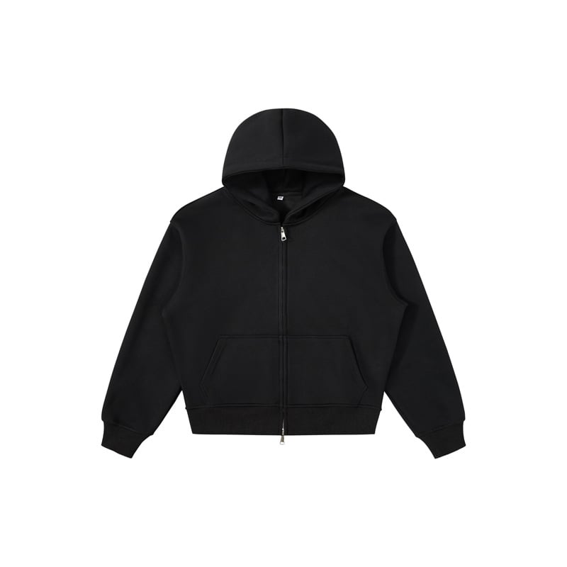 Men's Heavyweight Zip-Up Cropped Hoodie 👕 | 540G Loose Fit Solid Sweatshirt | Streetwear Jacket
